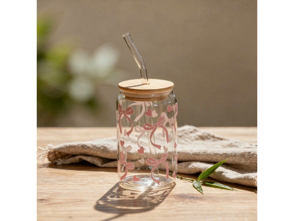 Dodej svému pitnému režimu jemnost a hravý nádech! Sklenička o objemu 400 ml s roztomilým motivem mašliček a srdíček je ideální pro každodenní osvěžení – ať už si dopřeješ ledovou kávu, limonádu nebo smoothie.